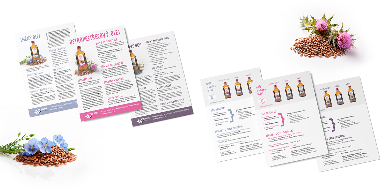 - návrh etiket pro rostlinné oleje, leták, text